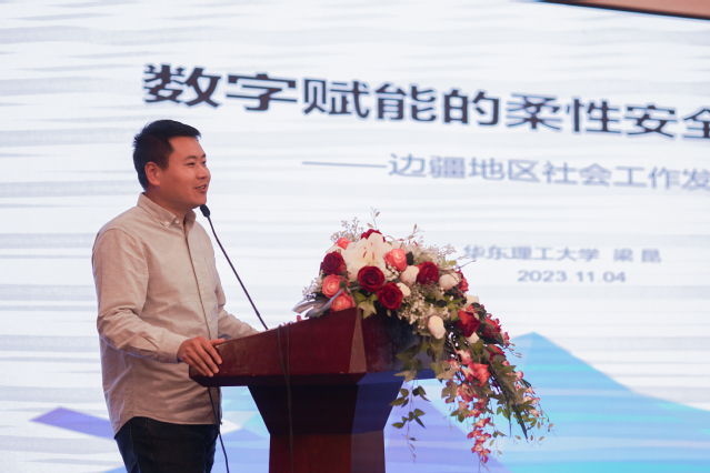华东理工大学社会与公共管理公司MSW教育中心副主任梁昆副教授题为《数字赋能的柔性安全治理:边疆地区社会工作发展的一个可能进路》的发言,从初入新疆的观察切入,鉴话语制度主义理论,考察边疆地区存在有异于内地的“安全”观念和相关话语,提出边疆地区社会工作发展的“数字赋能的柔性安全治理”政策试验思路。