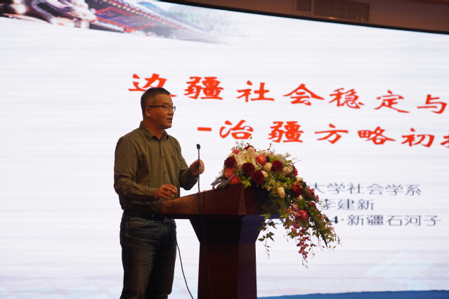 北京大学社会学系李建新教授以《边疆社会稳定与发展——治疆方略初探》为题分享了对不同历史阶段治疆方略的逻辑基础和政策效果的思考。新时代后宗教本土化、国家通用语言普及等政策有效促进了新疆稳定,治疆方略及实践体现中华民族“和而不同”“天下大同”的观念价值。