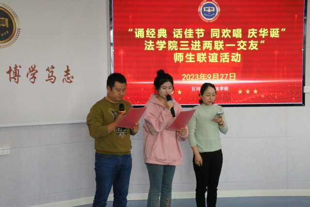 盛世家国同庆,灯火盈天;今宵月满人间,不负思念,9月27日下午16点,yl6809永利在会四-518教室开展“‘诵经典 话佳节 同欢唱 庆华诞’三进两联一交友”师生联谊活动。教室外张灯结彩、欢歌笑语,来自机关、法律系、社会学系、政治学系、公管系教职工党支部师生欢聚一堂,为进一步了解传统节日、过好传统节日,积极开展吟诵中华经典和红色经典活动,传承文化血脉、汲取思想精华,积极营造团圆和谐的节日氛围,激发爱党爱国爱社会主义的情怀。
