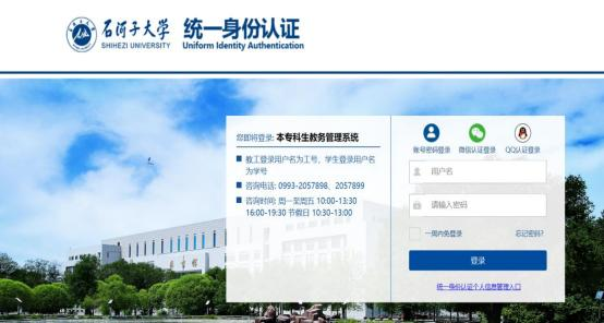 访问教务平台(https://jwgl.shzu.edu.cn),使用个人统一身份认证账号进行登录验证。