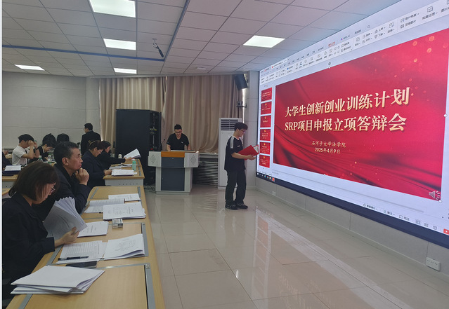 本次答辩会邀请各系主任、副主任共7位担任评审。答辩会上,项目负责人从项目研究背景、项目实施预期、项目创新点以及项目预期成果等方面进行汇报,汇报结束后评审老师对项目进行综合考评,对不足之处给予意见及建议,并优选出国创候选项目报教务处评审。答辩现场互动频繁,学术探讨氛围浓厚。